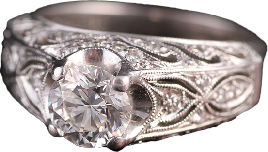 We carry a large selection of loose, GIA certified diamonds, or we can show you any of our completed rings that will help you decide which is best for you. There are a lot of things to consider, so we recommend you work with people who will take the time to explain things carefully, so you understand what it is you are actually paying for.